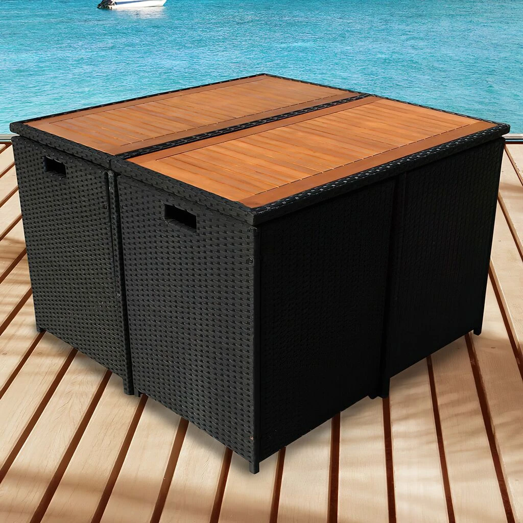 Die Herstellung der Holzmöbel für Garten, Balkon und Terrasse erfolgt in liebevoller Handarbeit. Es wird hochwertiges Eukalyptusholz verwendet. Dieses zeichnet sich durch seine natürliche Beständigkeit gegenüber Witterung, Pilz- sowie Insektenbefall aus. Die individuelle Maserung führt zu einem unverwechselbaren Unikat. Die Gartenmöbel werden nach der Fertigung mit Teak-Öl behandelt und versiegelt. Das Polyrattan überzeugt mit einem natürlichen Look. In den Wintermonaten wird zu einer kühlen und trockenen Lagerung geraten. Eine Lagerung bei starker Nässe sollte vermieden werden. Hierdurch kann das Holz Schaden nehmen.