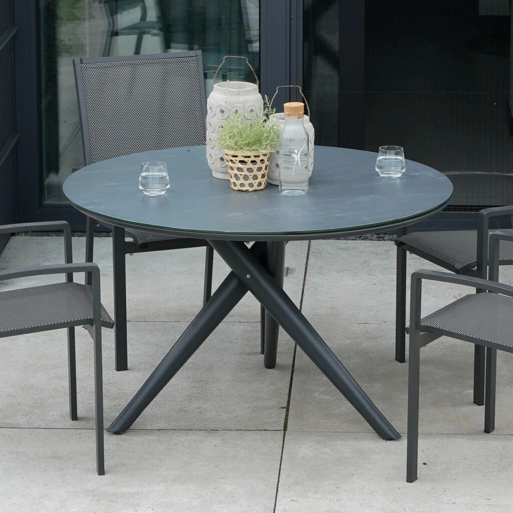 Alu-Glaskeramik Esstisch Rund In Anthrazit – 120cm – Eranemo