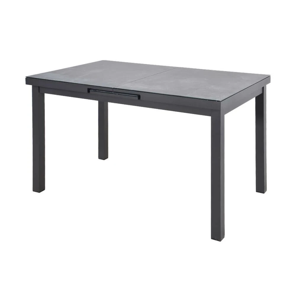 Dieser robuste Gartentisch wird unter ständiger Qualitätskontrolle aus Aluminium gegossen und erhält eine farbige Pulverbeschichtung. Die strapazierfähige und robuste Tischplatte ist mit einer 5 mm starken Glas-Keramik-Schicht gefertigt. Das Outdoor-Möbelstück ist robust und wetterfest. Zur Reinigung sind Wasser und ein Schwamm ausreichend. Von säurehaltigen Reinigungsmittel wird abgeraten. Diese können die Oberfläche schädigen und zu einem Verlust der Wetterbeständigkeit führen.