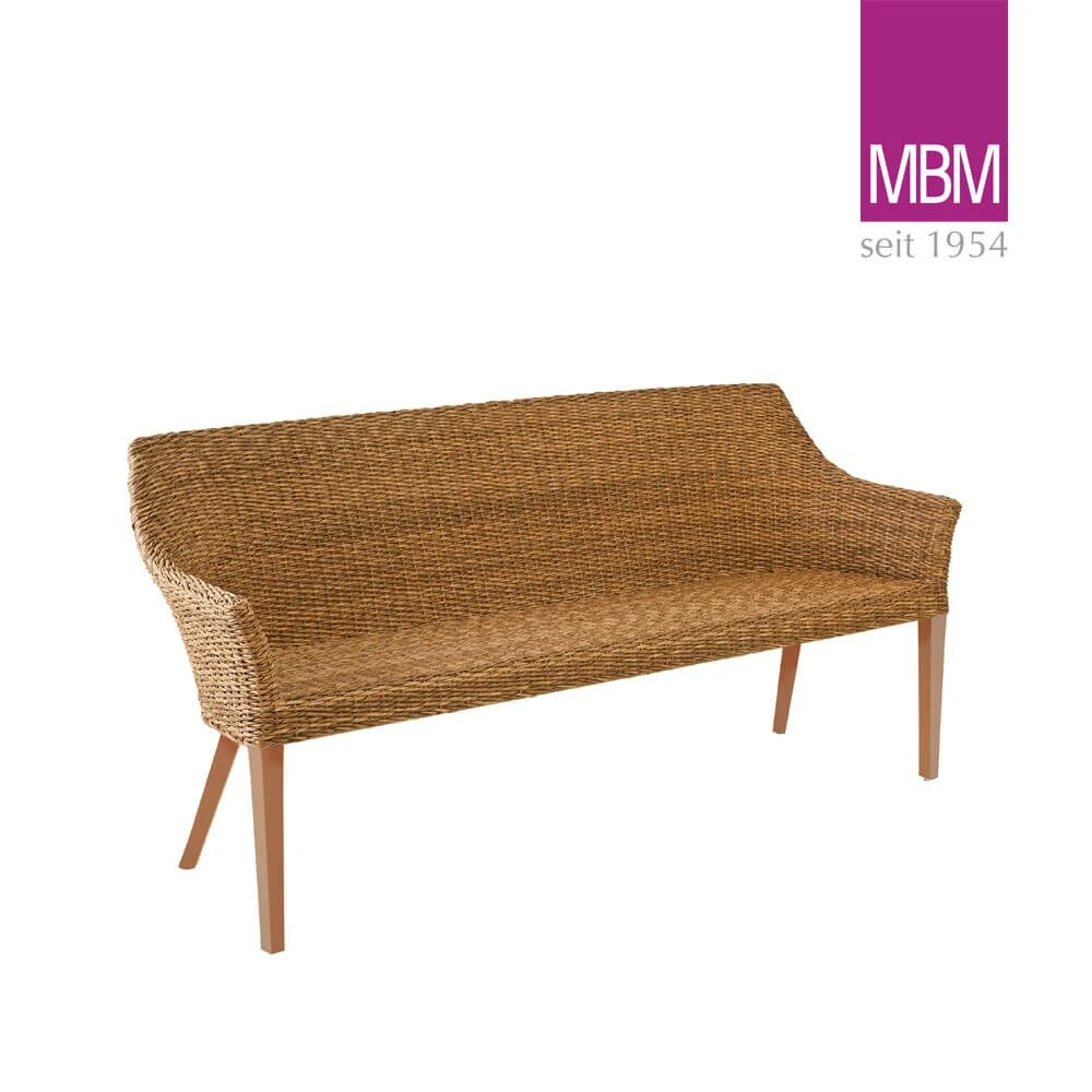 Die 3-Sitzer-Gartenbank von MBM zeichnet sich durch den Charme und die Gemütlichkeit des Kolonialstils aus. Mit dieser Bank liefert der deutsche Hersteller die passende Sitzgelegenheit für die Gartenmöbel-Serie Tortuga. Die Kombination von Aluminium, braunem Geflecht und Resysta-Holzersatz ergibt ein in Qualität und Optik überzeugendes Möbelstück für den Außenbereich. Die Bank ist von rechteckiger Form und mit einer pflegeleichten und wasserfesten Oberfläche aus Mirotex-Geflecht. Dieses von Hand gedrehte Geflecht ist optisch und haptisch von natürlichem Rattan kaum zu unterscheiden. Allerdings ist das Geflecht wesentlich widerstandsfähiger als herkömmliches Rattan. Sitzfläche, Rückenlehne und Armlehnen sind aus diesem Geflecht. Die Beine der Gartenbank bestehen aus rostfreiem Aluminium und dem bekannten Resysta-Material, das so aussieht und sich so anfühlt wie Holz. Kein Baum musste für diese besondere Bank im Kolonialstil gefällt werden.
