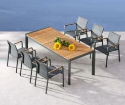 Große Alu 6er Sitzgruppe Mit Teakholzplatte In Anthrazit – Legar