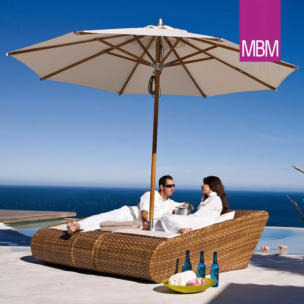 Beinahe skulptural wirkt die Relax Lounge Madrigal von MBM. Mit dieser außergewöhnlichen Sonnenliege verleihen Sie jedem Ambiente eine individuelle Note. Gleichzeitig sorgt sie für eine entspannte Atmosphäre und gibt ihrer Umgebung einen edlen Touch. Mit der eingebauten Bar und dem stationärem Schirmfuß ist sie ein autarkes Kleinod in jeder Umgebung.