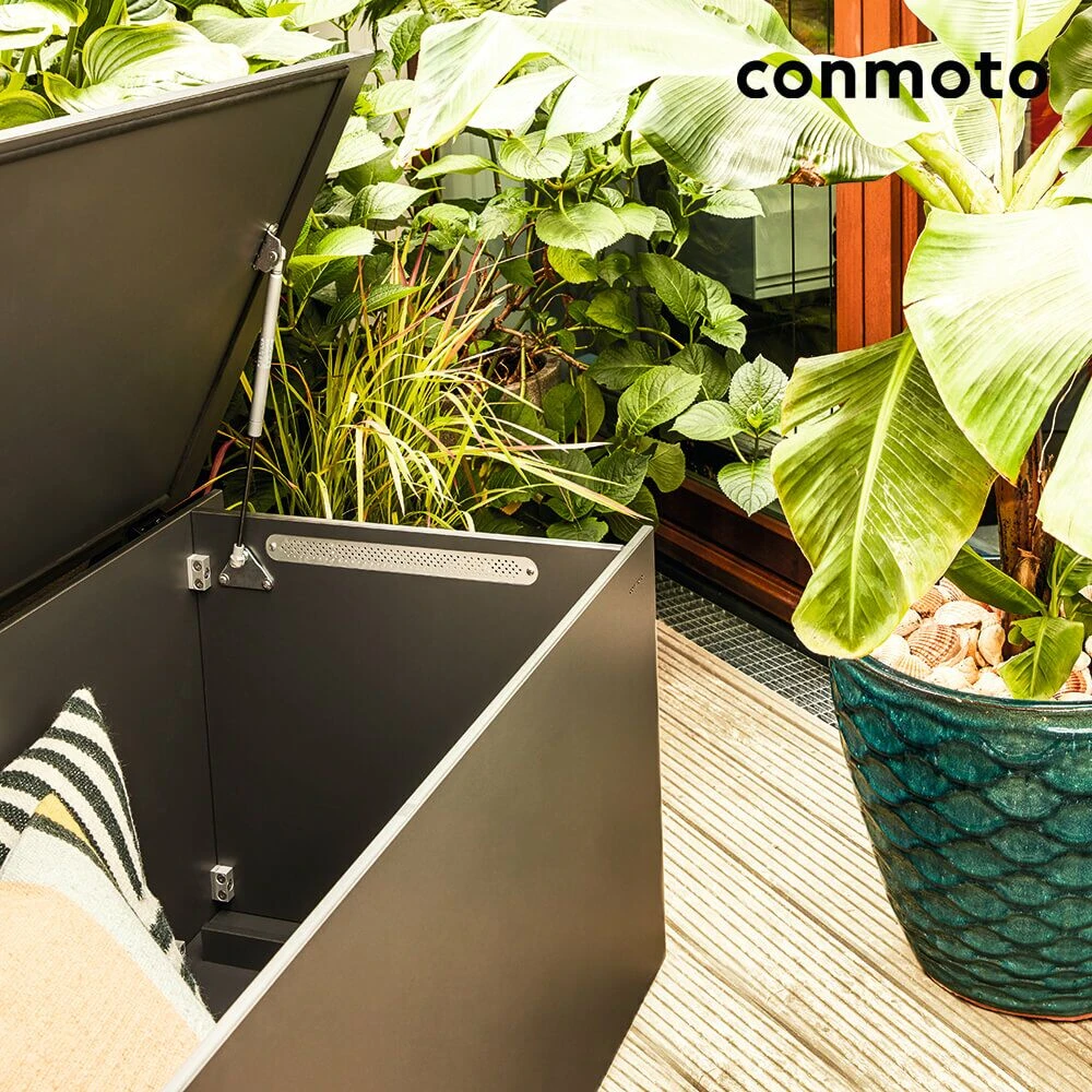 Die Outdoortruhen sind die ideale Ergänzung zu den Gartenmöbeln unserer Kollektion Conmoto und können frei mit diesen kombiniert werden. Das edle Design und die hohe Robustheit unterstreichen die vielfältige Einsatzbarkeit. Die Gartentruhe kann sowohl im Garten sowie auch auf der Terrasse oder dem Balkon genutzt werden. Die Herstellung in verschiedenen Größen ist möglich. Individuelle Farbvarianten und Sonderwünsche in der Konstruktion lassen Ihren Garten zu einem einzigartigen Ruhepunkt werden. Gern erstellen wir Ihnen ein unverbindliches Angebot zu Ihren Sonderwünschen.