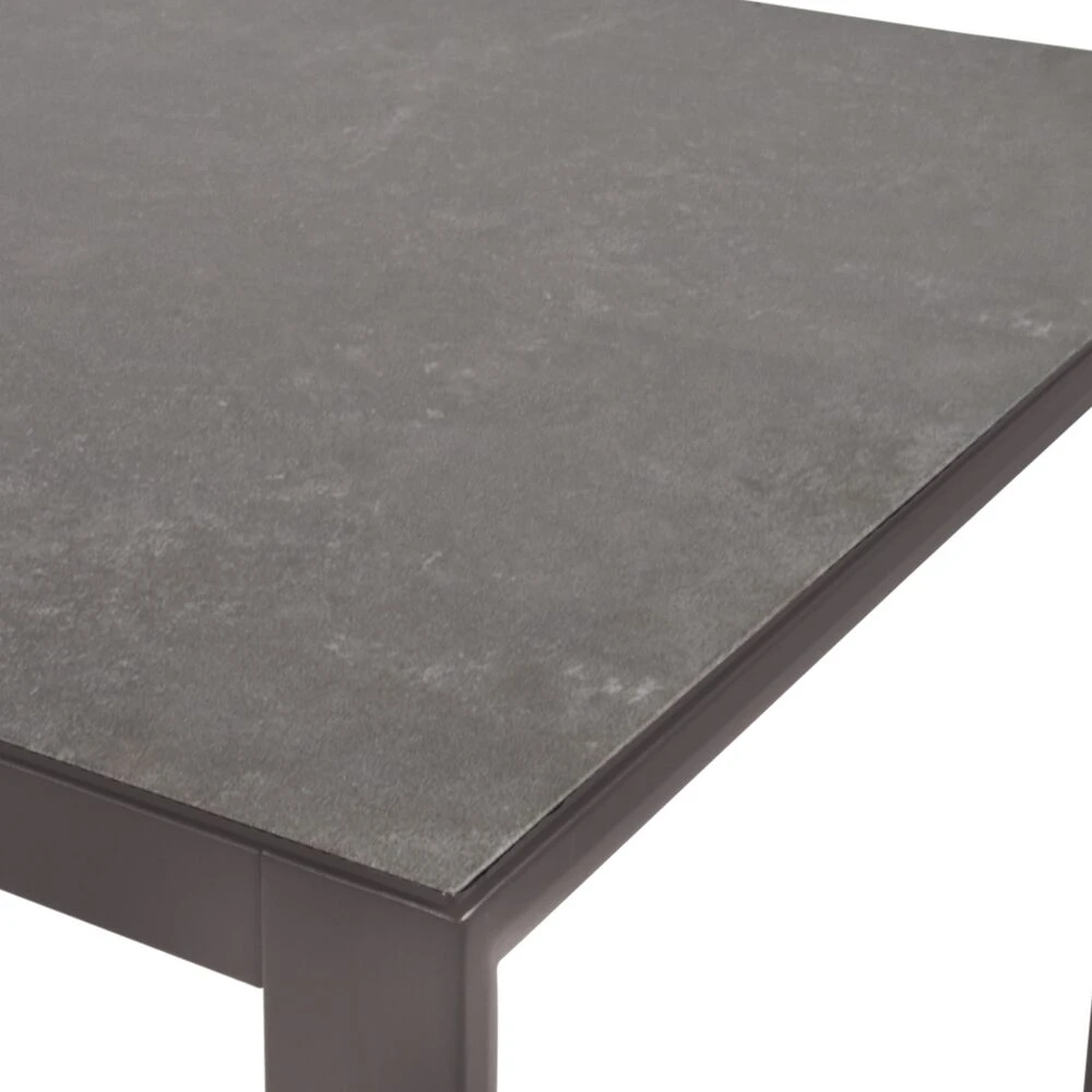 Dieser robuste Gartentisch wird unter ständiger Qualitätskontrolle aus Aluminium mit einer 6mm starken Glaskeramikplatte gefertigt. Die Outdoor-Möbel sind beständig gegenüber Witterung und können ganzjährig im Außenbereich eingesetzt werden. Zur Reinigung sind Wasser und ein Schwamm ausreichend. Von säurehaltigen Reinigungsmittel wird abgeraten. Diese können die Oberfläche schädigen und zu einem Verlust der Wetterbeständigkeit führen.