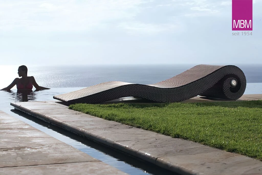 Die außergewöhnliche Sonnenliege wird aus hochwertigem Aluminium und einem Kunststoffgeflecht (Mirotex), welches eigens von MBM entwickelt wurde, gefertigt. In Optik und Haptik steht das Geflecht echtem Rattan in Nichts nach, ist aber wesentlich pflegeleichter und langlebiger. Hier können Sie sich wirklich mit ruhigem Gewissen zurück lehnen und den Sommer genießen. Die Reinigung erfolgt mit handelsüblichen Reinigungsmitteln.