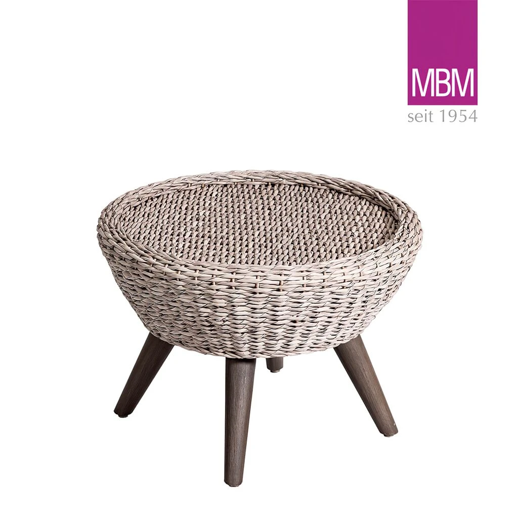 Möbel aus Resysta sehen aus wie Holz und fühlen sich an wie Holz. Das Versprechen von MBM lautet: Für die Herstellung dieser Möbelstücke muss kein einziger Baum gefällt werden. Das Material wurde bereits mit verschiedenen Preisen ausgezeichnet, es ist witterungsbeständig, farbecht, pflegeleicht und sehr langlebig. Gartenmöbel aus diesem Material trotzen Feuchtigkeit, sodass die Oberfläche dauerhaft hält, nicht nachgeschliffen oder neu gestrichen werden muss. Außerdem ist Resysta recycelbar, kann also nach der Verwendung zerkleinert und erneut verwendet werden, wodurch ein unendlicher Kreislauf entsteht. Zu 60 Prozent besteht das Material aus Reishülsen, welche Reststoffe der Lebensmittelindustrie sind. Mirotex Twist ist eine ausgezeichnete Alternative zu Rattan. Das Kunststoffgeflecht überzeugt durch seine natürliche Optik und ist eine hochelastische Faser, die in Handarbeit nach einem traditionellen Flechtverfahren um ein Aluminiumgestell geflochten wird. Sie ist UV-beständig und wetterfest.