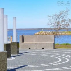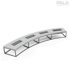 Der Outdoor Tisch für den Park bietet mit neun Metern Länge Freunden und Familien Platz sich im öffentlichen Raum zu treffen. Während das Tischgestell aus Metall gefertigt wird, besteht die Tischplatte aus hochqualitativem Beton. Vier Grillstellen sind in die Oberfläche eingelassen, sodass dem nächsten Barbecue nichts mehr im Wege steht. Für das Abladen bei Speditions-Anlieferung wird ein Kran benötigt.